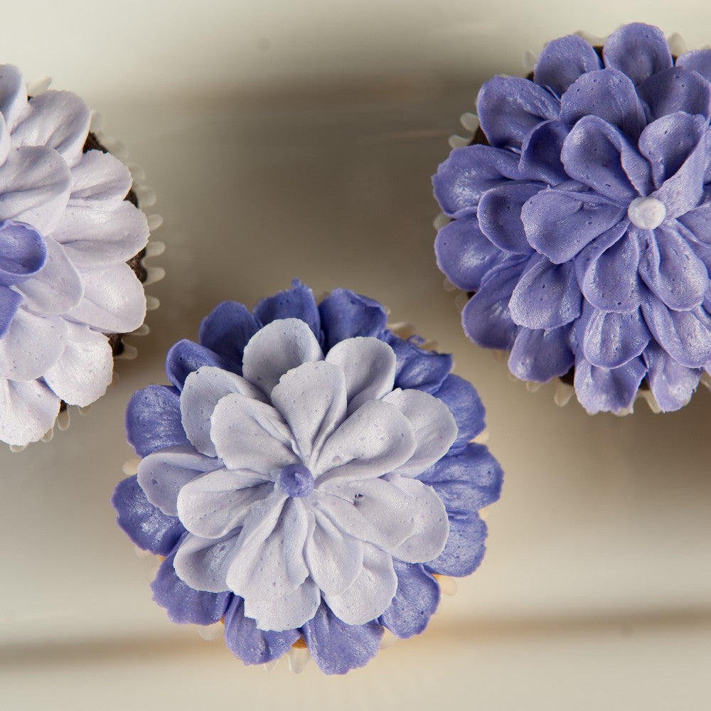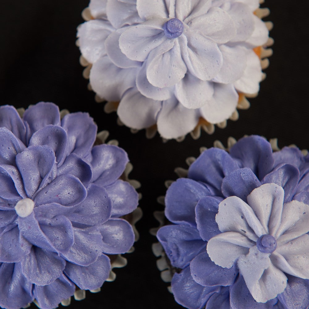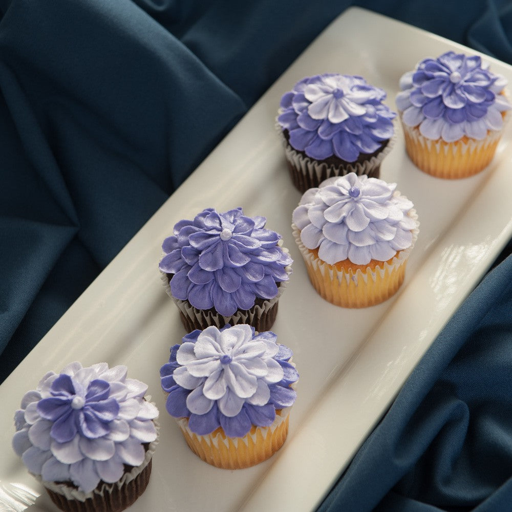 Make someone's day even brighter with one 1/2 dozen (6) beautiful hydrangea flowers in shades of purple. Three (3) yellow and three (3) chocolate cupcakes topped with creamy frosting petals are included in your order.